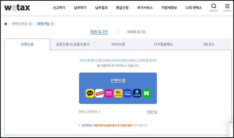 3)로그인(간편인증, 공동인증서/금융인증서, SMS인증 등)